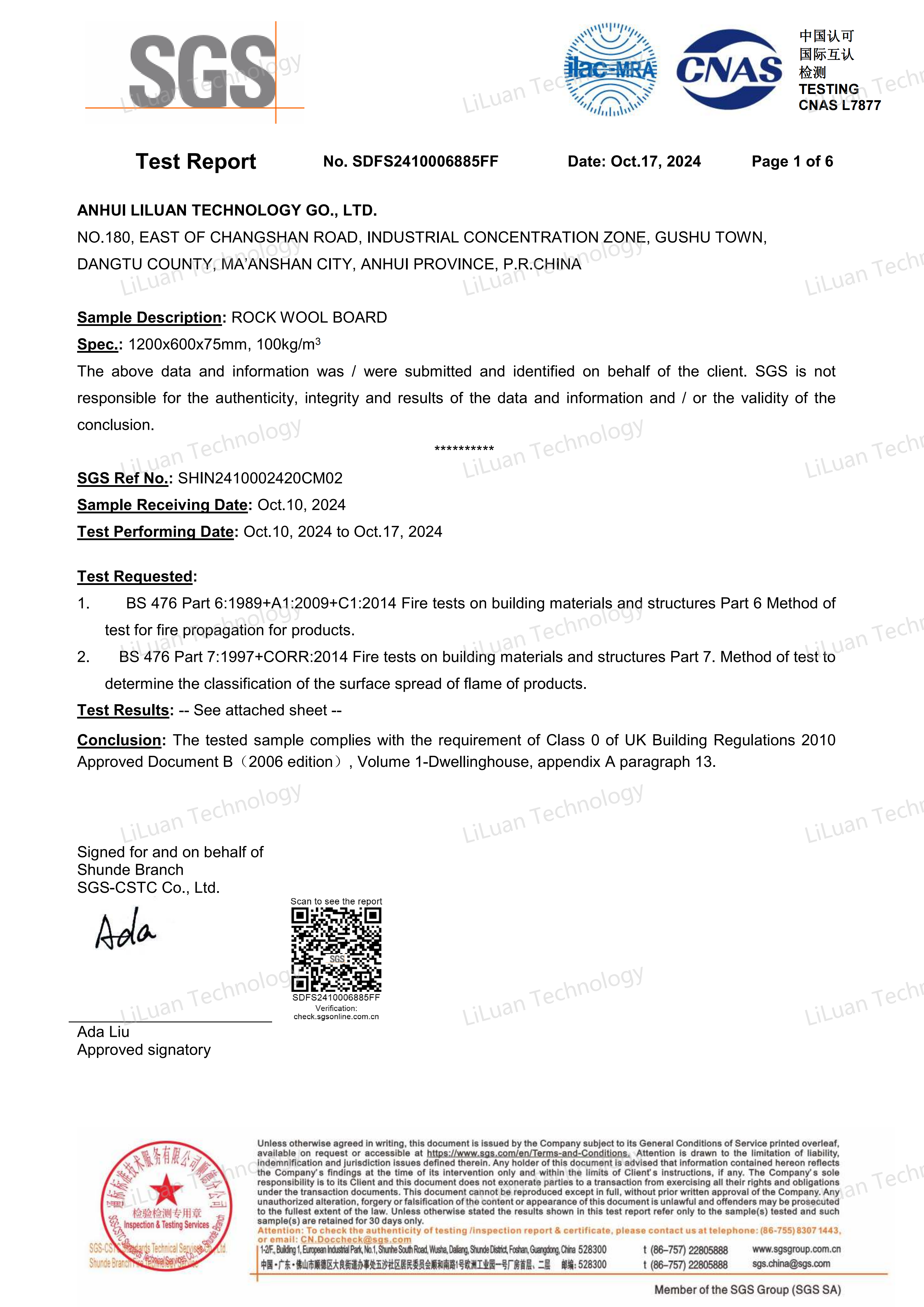 Liluan Technology is a premier manufacturer specializing in high-performance rock wool insulation.With 15+ years of industry expertise, we deliver customized, eco-friendly solutions for building, industrial, and marine applications. · Annual Capacity: 50,000+ Tons · Global Standard: A1 Non-combustible Fire Rating · Superior Tech: Excellent thermal (0.034 W/(m · K) and acoustic performance · Logistics: Strategic global supply chain for fast worldwide delivery "All technical data is verified by SGS Laboratory reports SDFS2410006885FF and SHIN2410002420CM01."